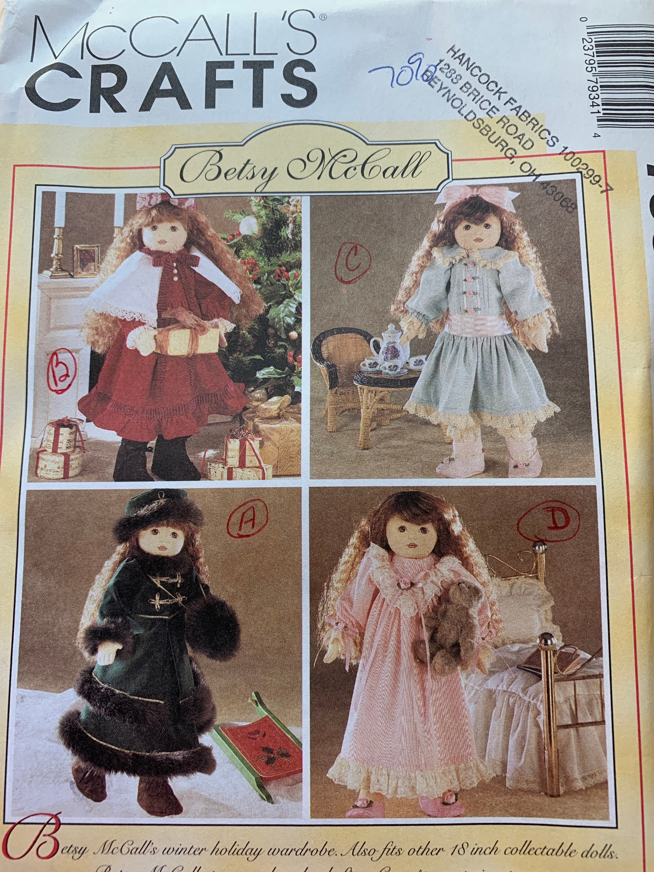 Mccalls 7934 Betsy Mccall Winter Holiday For 18 Inch Doll Coat Etsy